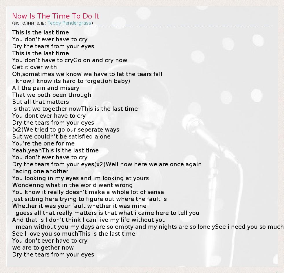 А как ты думаешь, о чем песня "Now Is The Time To Do It" ?
