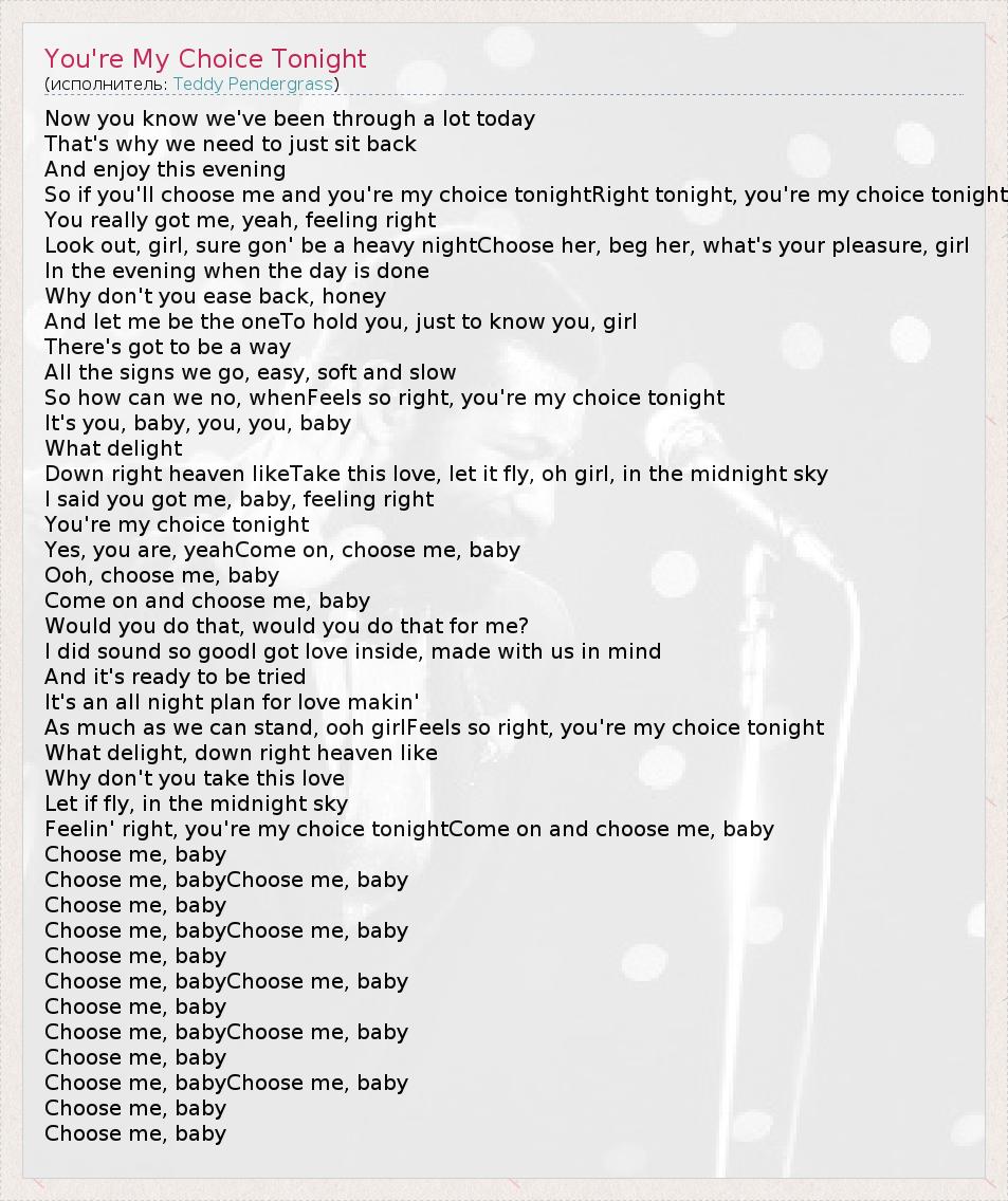 А как ты думаешь, о чем песня "You're My Choice Tonight" ?