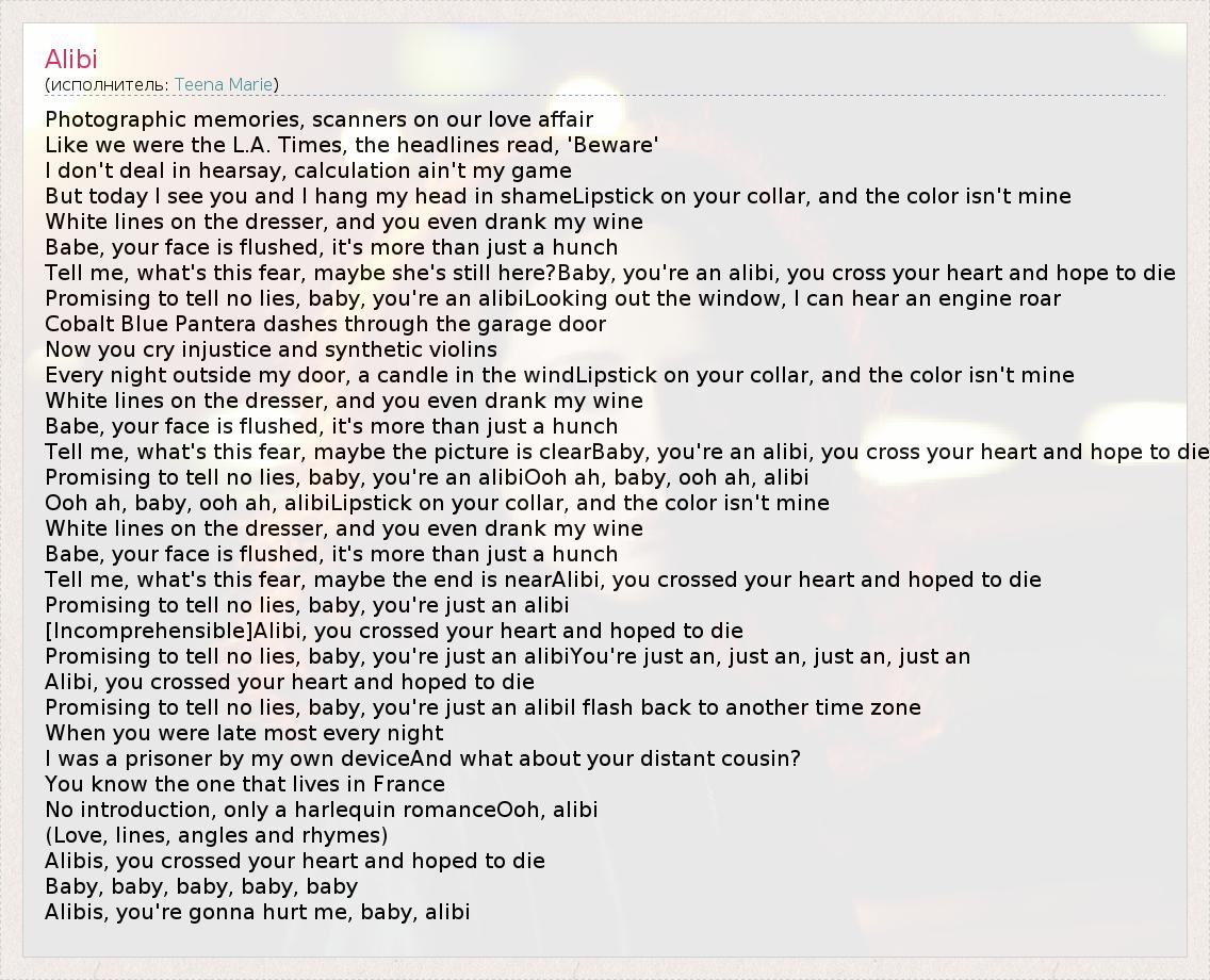 [Incomprehensible]Alibi, you crossed your heart and hoped to die