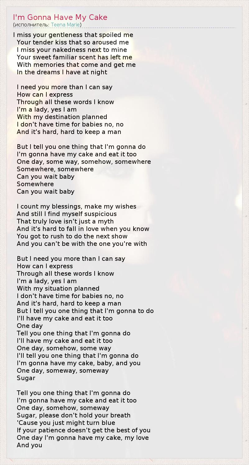 А как ты думаешь, о чем песня "I'm Gonna Have My Cake" ?