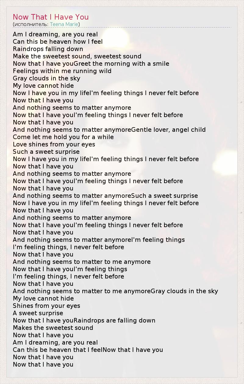 А как ты думаешь, о чем песня "Now That I Have You" ?