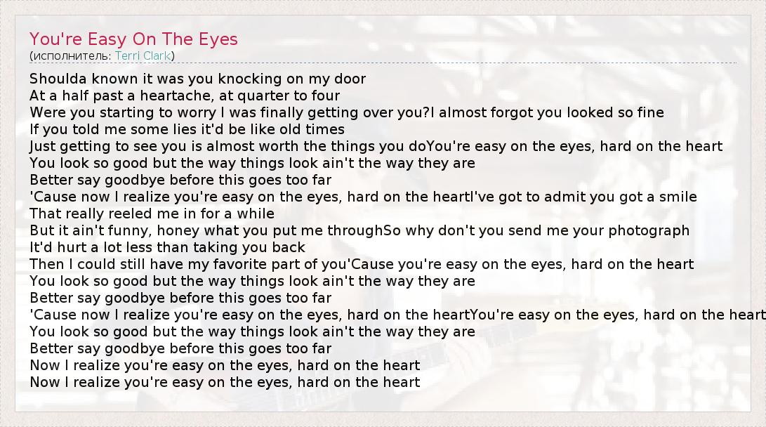 А как ты думаешь, о чем песня "You're Easy On The Eyes" ?