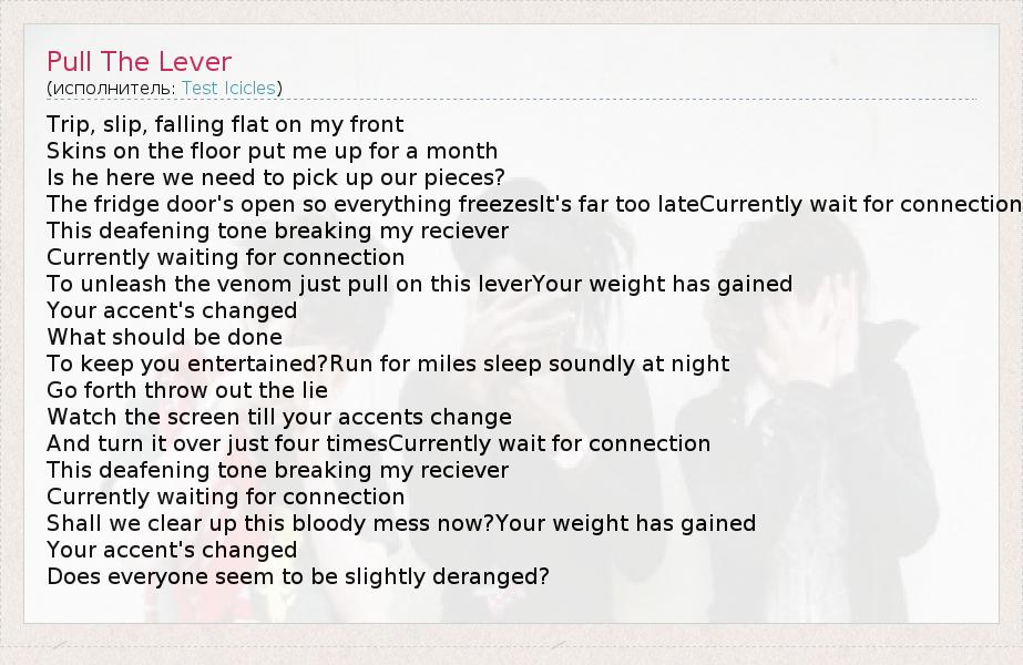 А как ты думаешь, о чем песня "Pull The Lever" ?