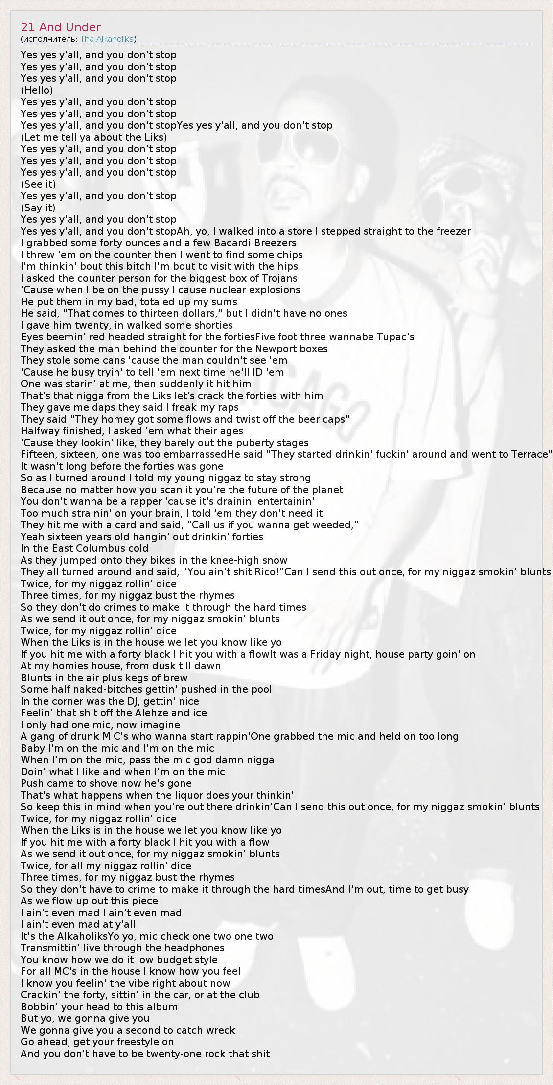 Yes yes y'all, and you don't stopYes yes y'all, and you don't stop