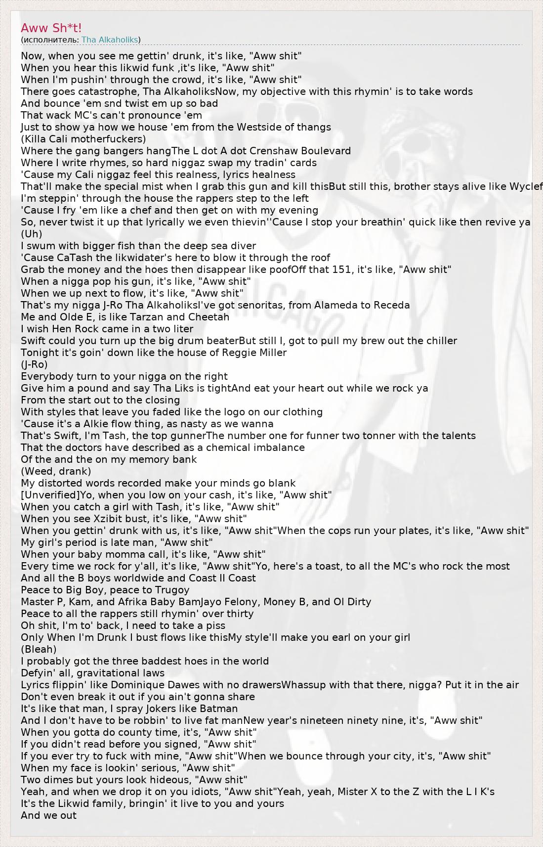 А как ты думаешь, о чем песня "Aww Sh*t!" ?