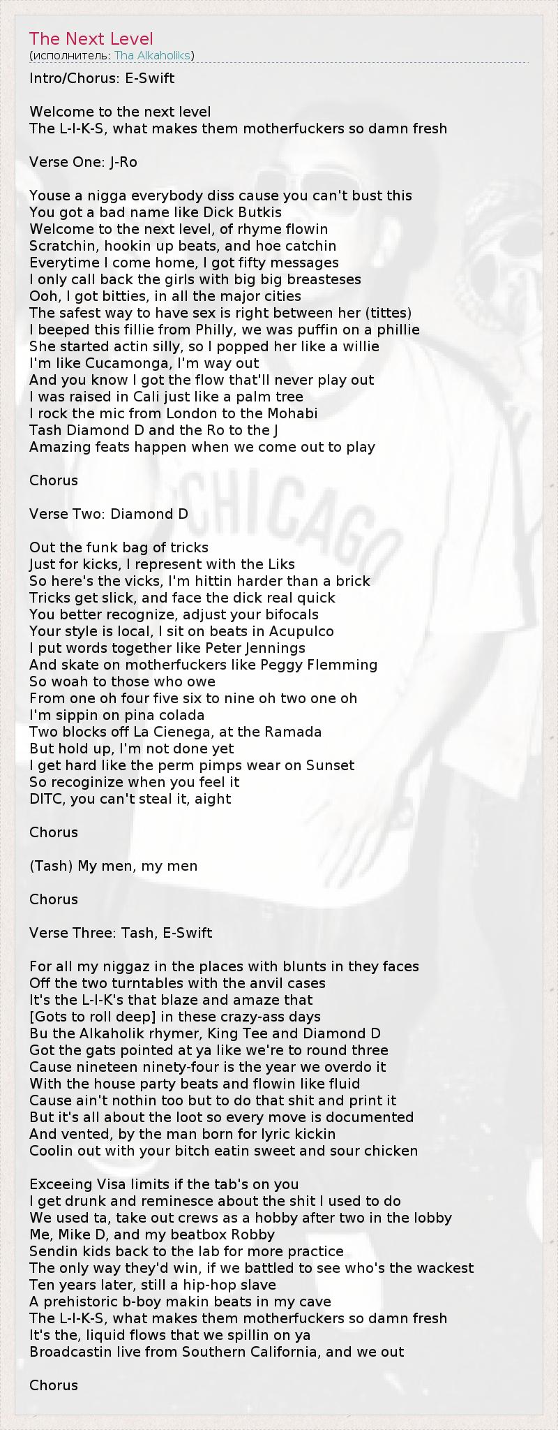 Это интересно:Группа Tha Alkaholiks, также известная под названием Tha Liks, хип-хоп группа из Лос-Анджелеса, штат Калифорния. Ещё в начале 90-ых годов группа исполняла фанковую музыку для вечеринок с элементами хардкора. Продюссером и DJ'ем группы, был E-Swift (настоящее имя Eric Brooks, родился в городе Цинцинати, штат Огайо, США), роль MC в группе исполняли J-Ro (настоящее имя James Robinson, родился в Лос-Анджелесе, штат Калифорния,... продолжение