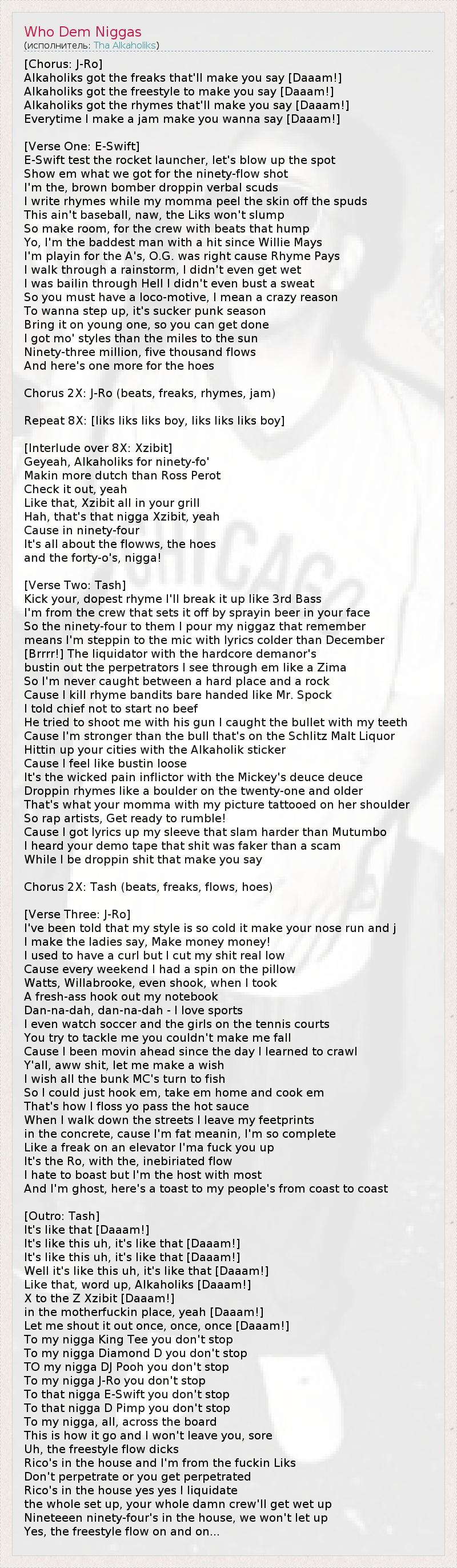 А как ты думаешь, о чем песня "Who Dem Niggas" ?