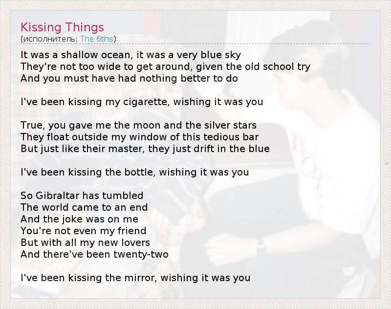 А как ты думаешь, о чем песня "Kissing Things" ?