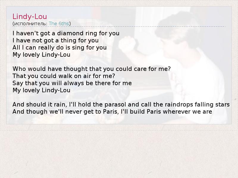 А как ты думаешь, о чем песня "Lindy-Lou" ?