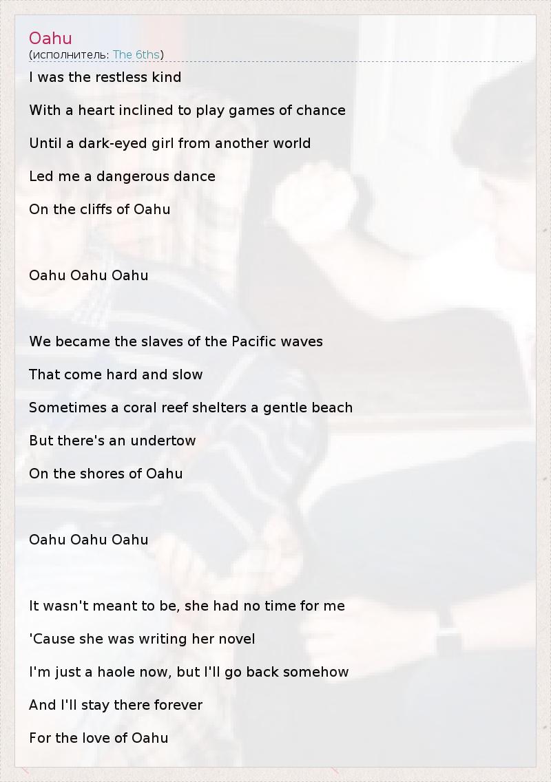 А как ты думаешь, о чем песня "Oahu" ?