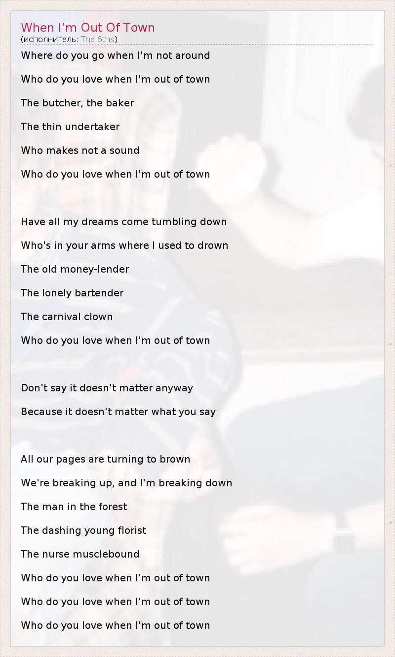 А как ты думаешь, о чем песня "When I'm Out Of Town" ?