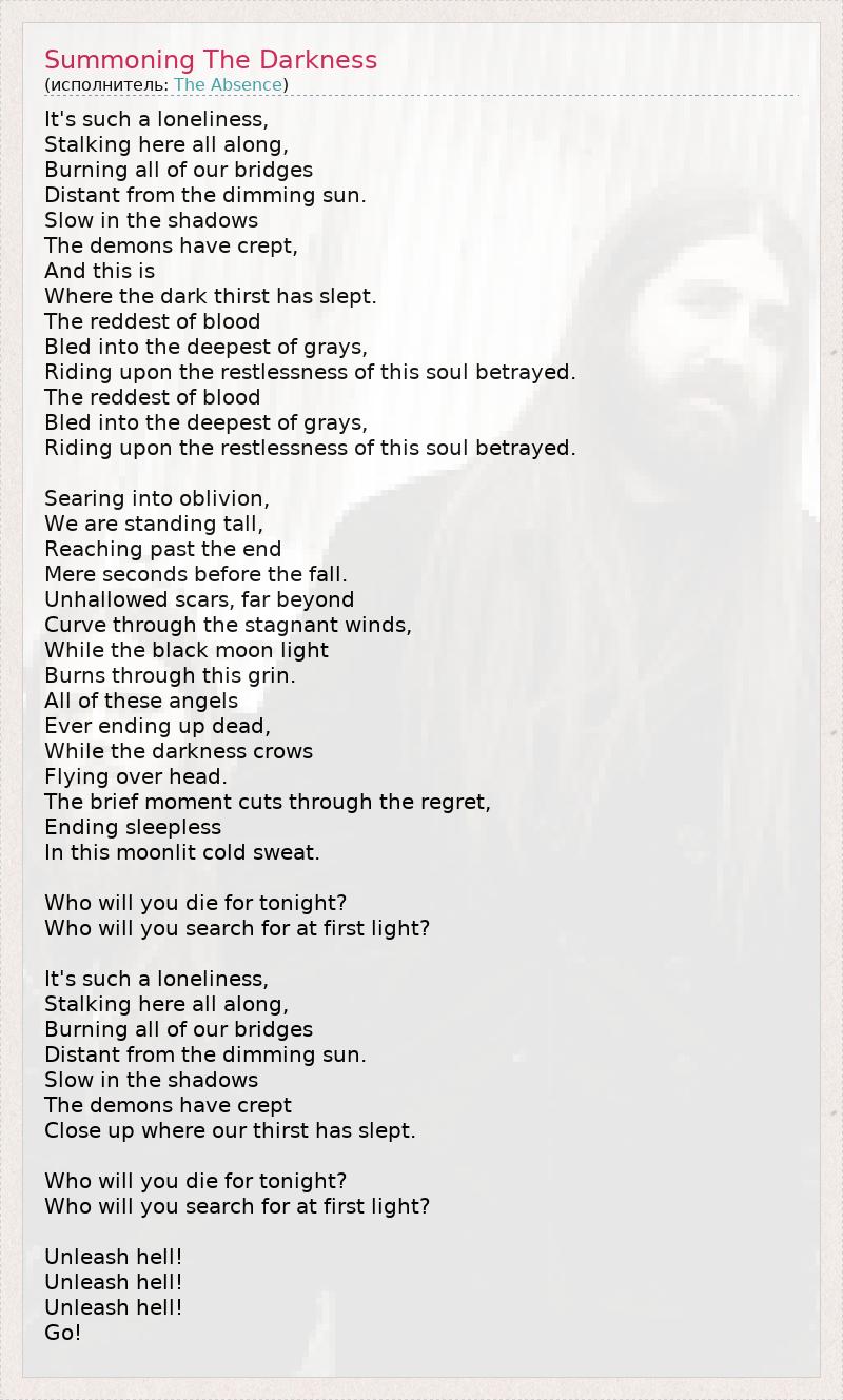 А как ты думаешь, о чем песня "Summoning The Darkness" ?