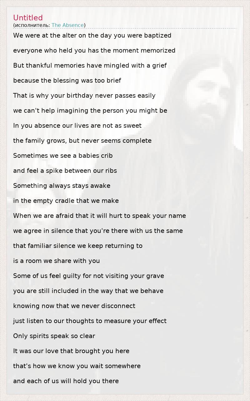 Это интересно:Новое приобретение лейбла “Metal Blade Records“, флоридская группа The Absence, записала 3 альбома. Коллектив играет музыку в стиле "Melodic Death-Metal".Дискография:2005 - From Your Grave2007 - Riders Of The Plague2010 - Enemy UnboundСостав :Джейми Стюарт - Вокал Патрик Пинтаволл - Гитара Питер Джозеф - Гитара Николас Калаки - Бас Джерими Клинк - Ударные