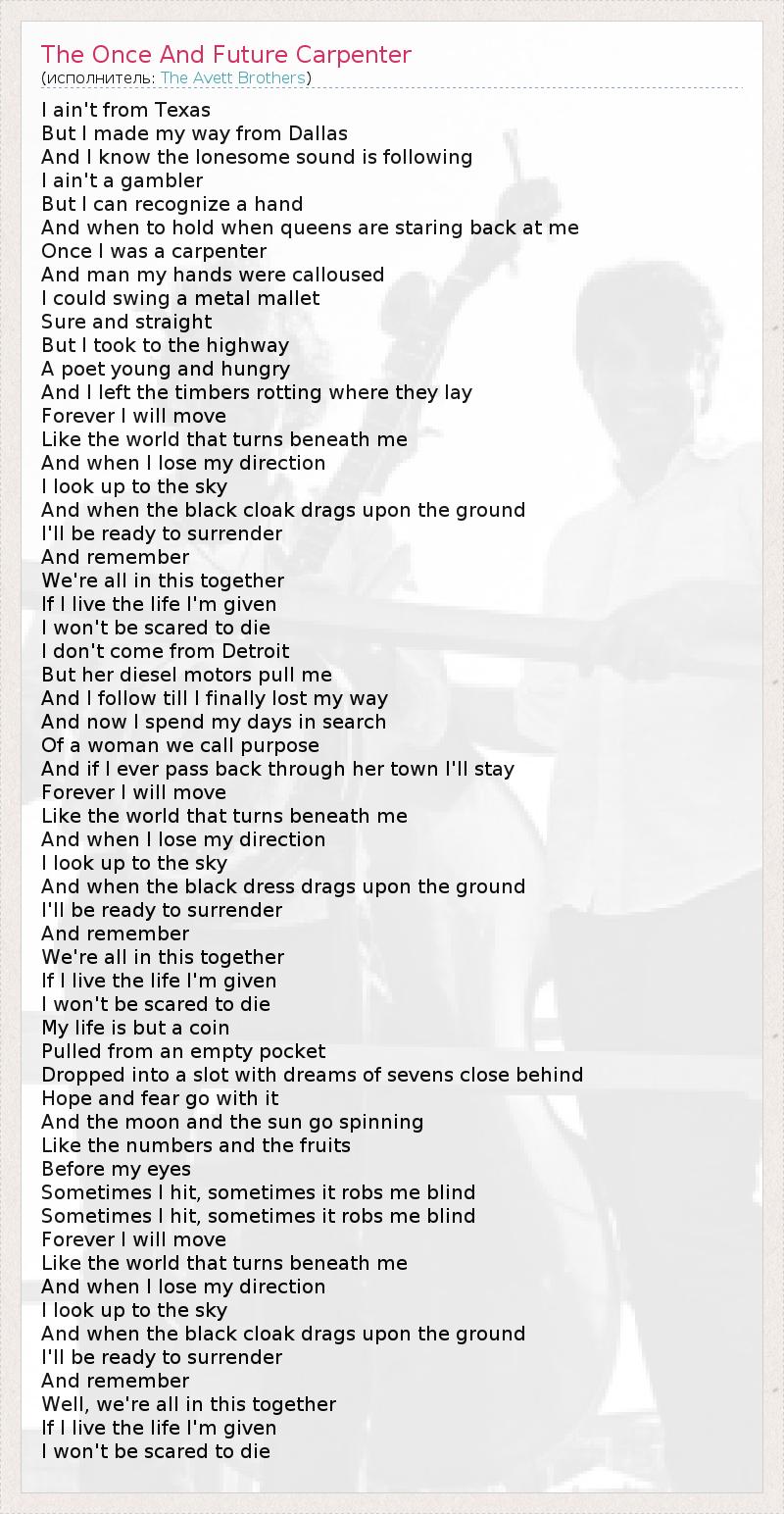 А как ты думаешь, о чем песня "The Once And Future Carpenter" ?