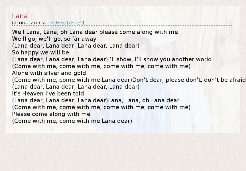 (Lana dear, Lana dear, Lana dear)Lana, Lana, oh Lana dear