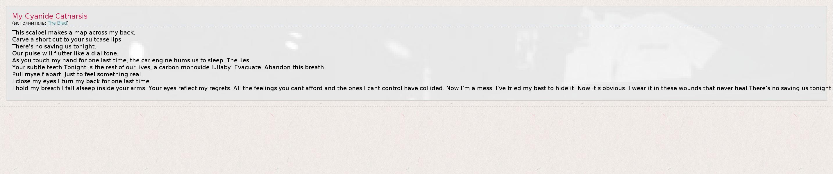 А как ты думаешь, о чем песня "My Cyanide Catharsis" ?