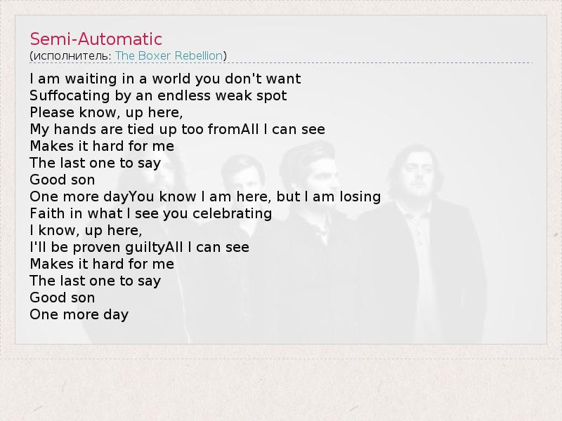 А как ты думаешь, о чем песня "Semi-Automatic" ?