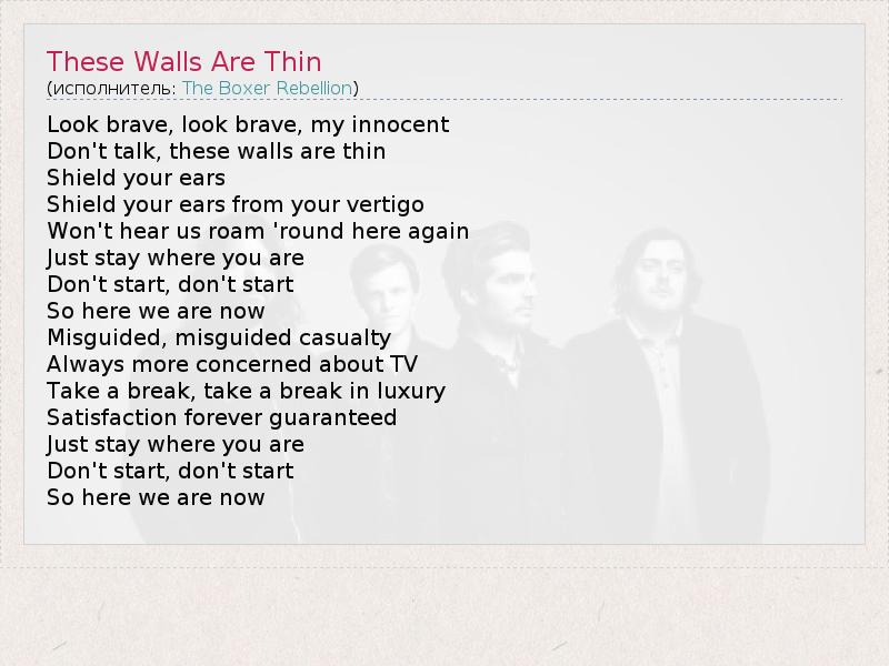 А как ты думаешь, о чем песня "These Walls Are Thin" ?