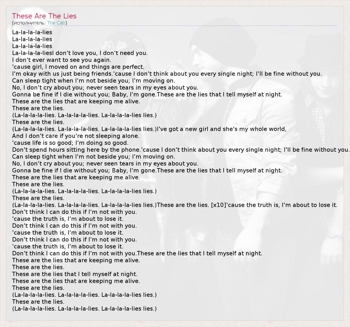 А как ты думаешь, о чем песня "These Are The Lies" ?