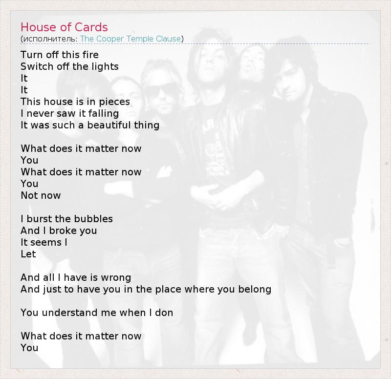 Это интересно:Биография: Крутая прическа еще не делает из музыканта звезду мирового масштаба. Но может существенно способствовать привлечению внимания к начинающей группе. Шестерка из английского Рединга The Cooper Temple Clause славна не только и не столько бардаком НА головах, сколько беспорядком В головах ее участников. «Мы играем музыку, которую хотели слышать от других, но - не услышали», - говорит вокалист... продолжение