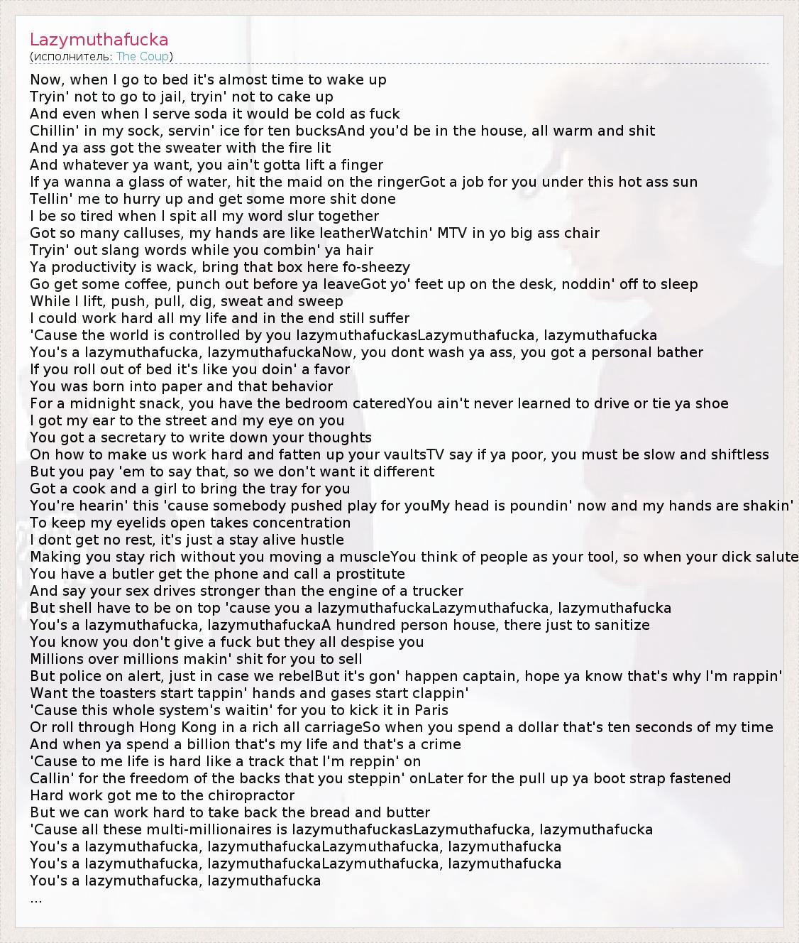 А как ты думаешь, о чем песня "Lazymuthafucka" ?