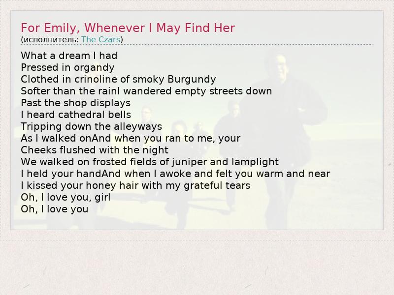 А как ты думаешь, о чем песня "For Emily, Whenever I May Find Her" ?