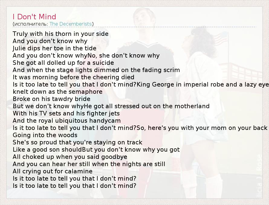 А как ты думаешь, о чем песня "I Don't Mind" ?