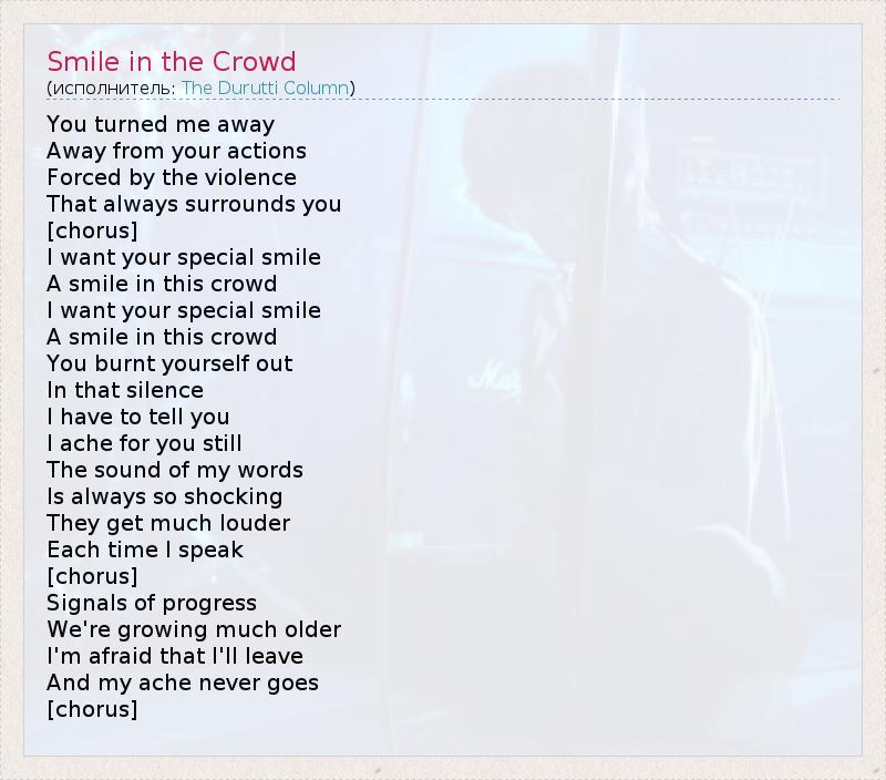А как ты думаешь, о чем песня "Smile in the Crowd" ?