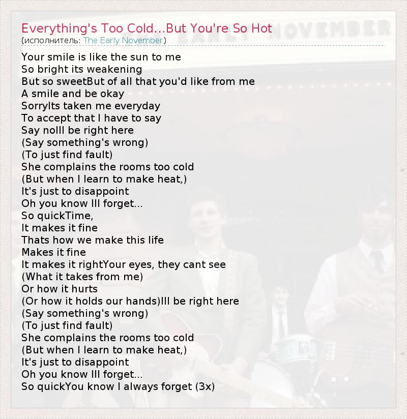 ГлавнаяИсполнителиThe Early NovemberEverything's Too Cold...But You're So Hot