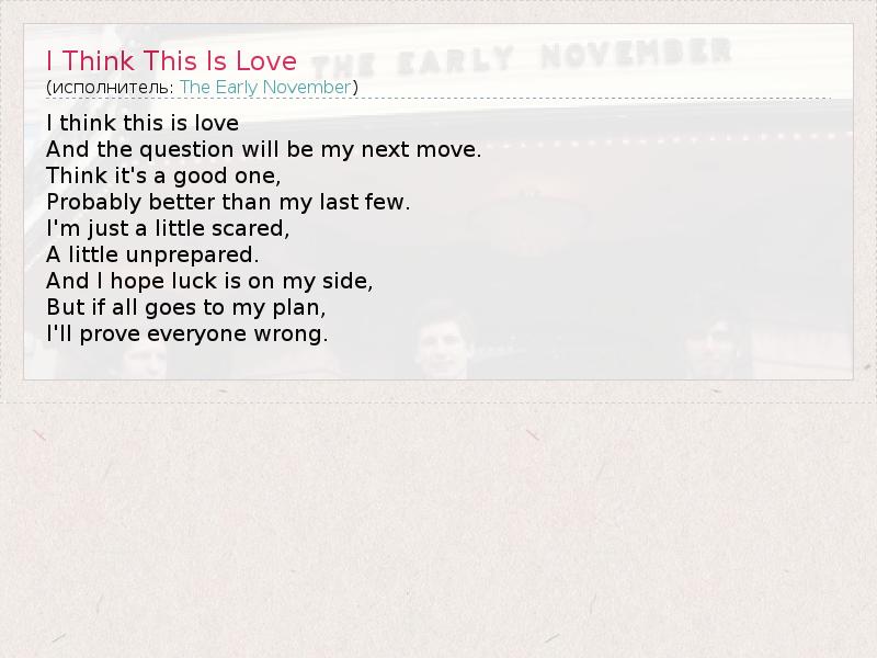 А как ты думаешь, о чем песня "I Think This Is Love" ?