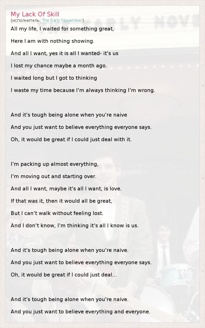 А как ты думаешь, о чем песня "My Lack Of Skill" ?