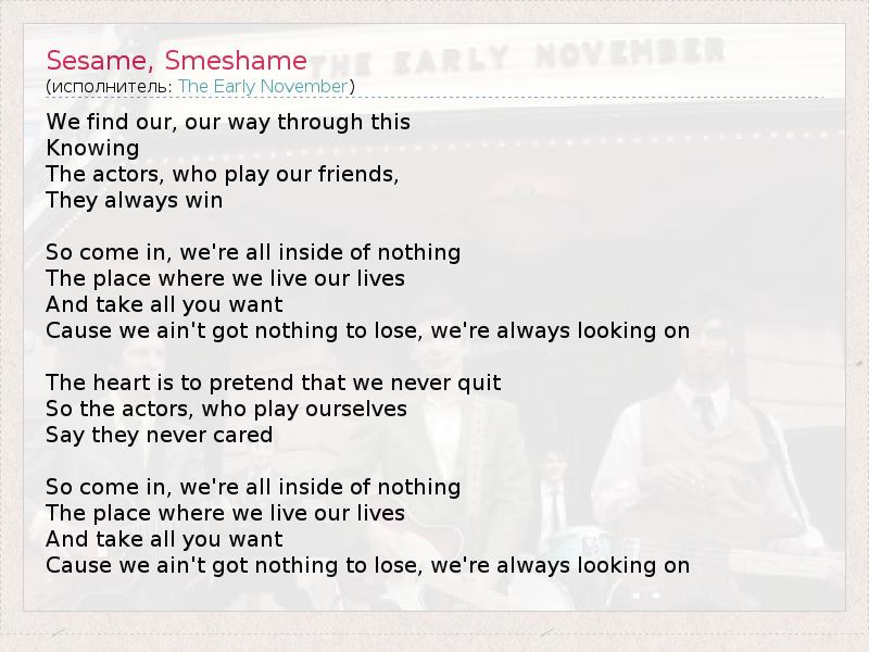 А как ты думаешь, о чем песня "Sesame, Smeshame" ?