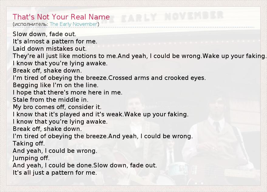 А как ты думаешь, о чем песня "That's Not Your Real Name" ?