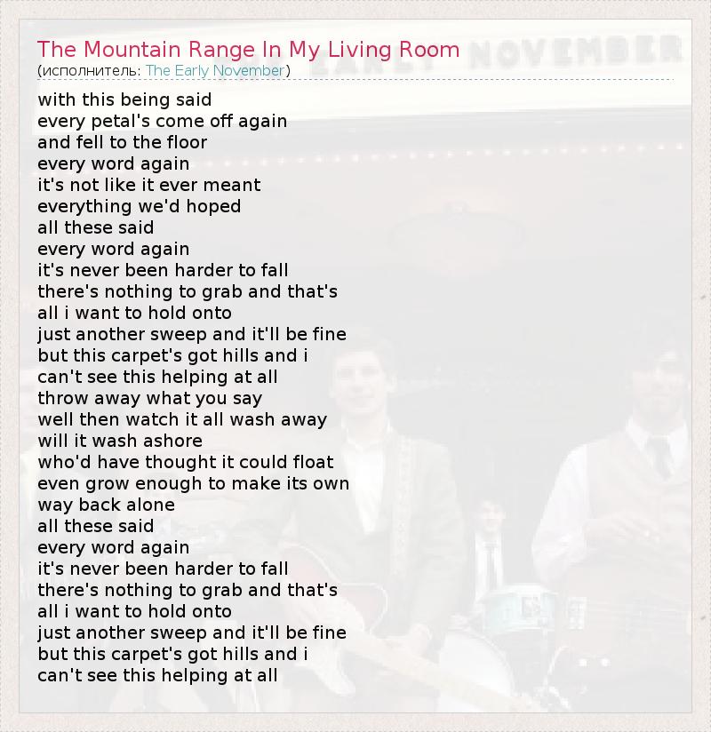 ГлавнаяИсполнителиThe Early NovemberThe Mountain Range In My Living Room