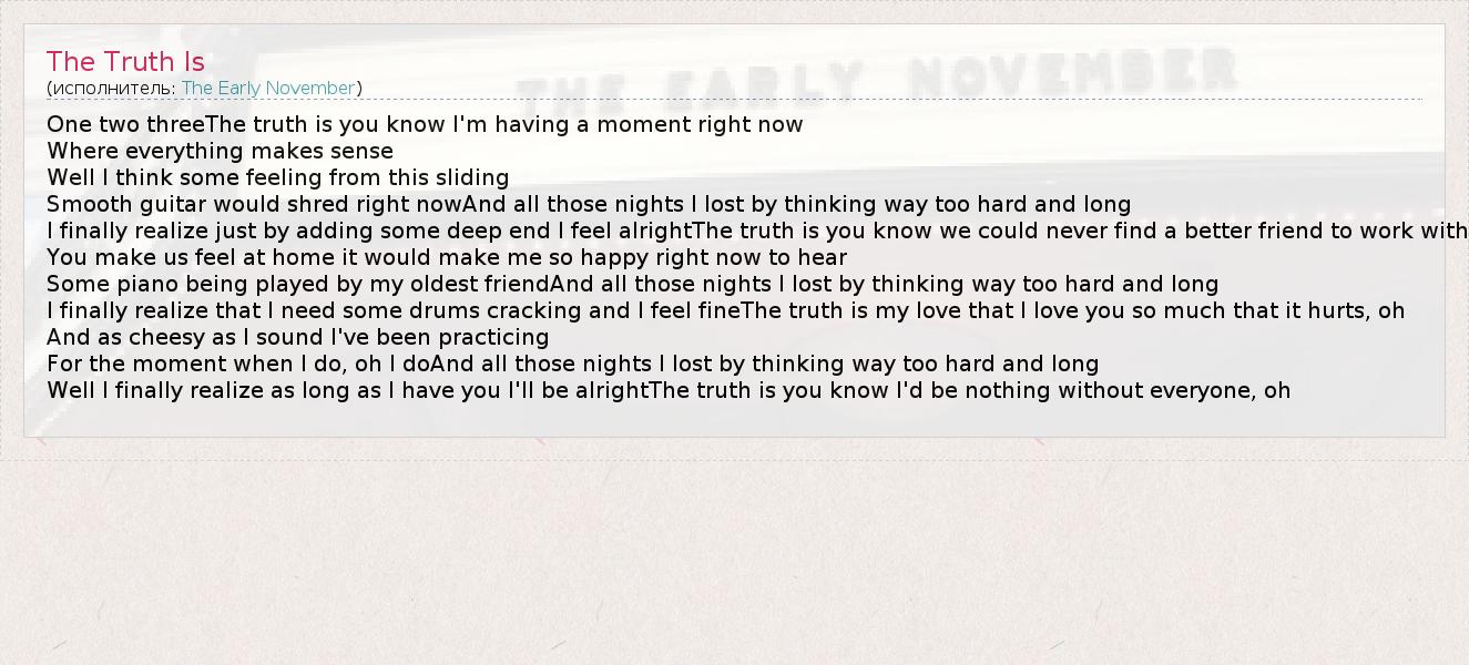 А как ты думаешь, о чем песня "The Truth Is" ?