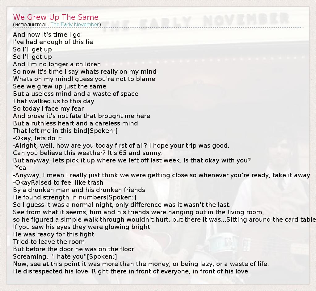А как ты думаешь, о чем песня "We Grew Up The Same" ?