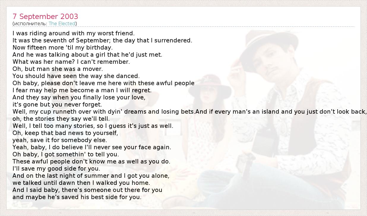 А как ты думаешь, о чем песня "7 September 2003" ?