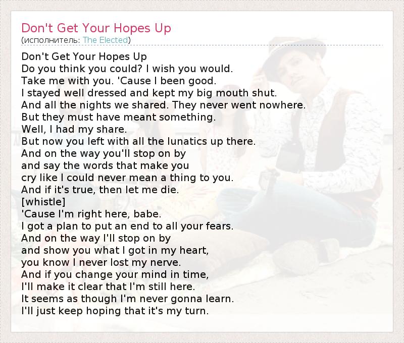 А как ты думаешь, о чем песня "Don't Get Your Hopes Up" ?