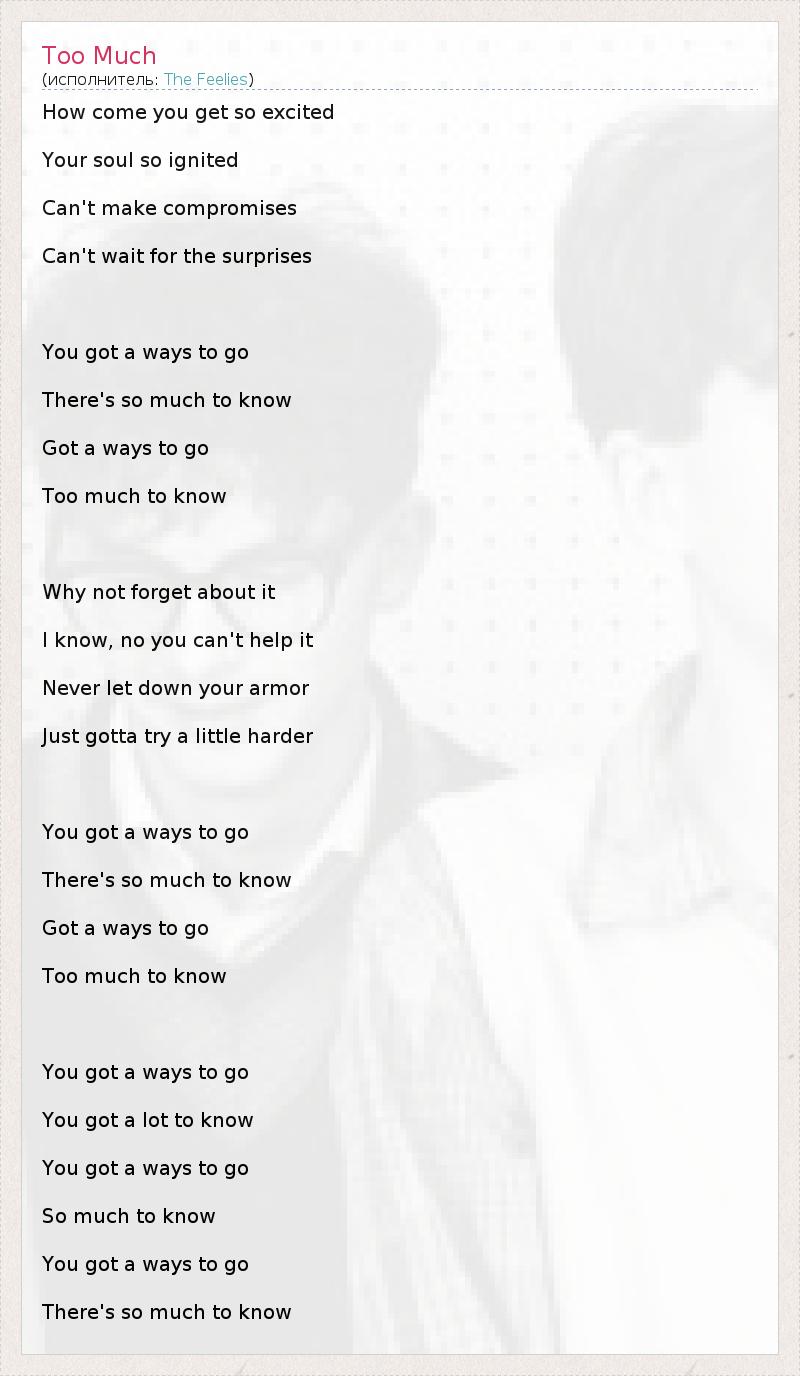 А как ты думаешь, о чем песня "Too Much" ?