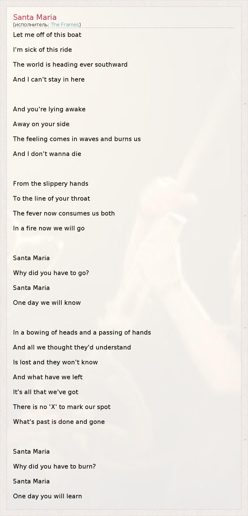 А как ты думаешь, о чем песня "Santa Maria" ?