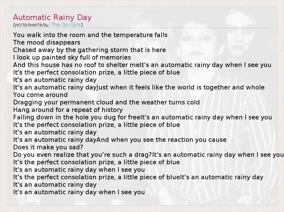 А как ты думаешь, о чем песня "Automatic Rainy Day" ?