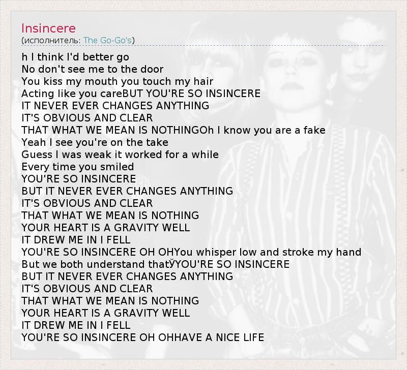 YOU'RE SO INSINCERE OH OHYou whisper low and stroke my hand