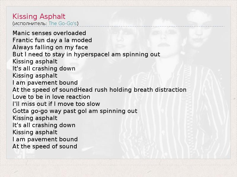 А как ты думаешь, о чем песня "Kissing Asphalt" ?