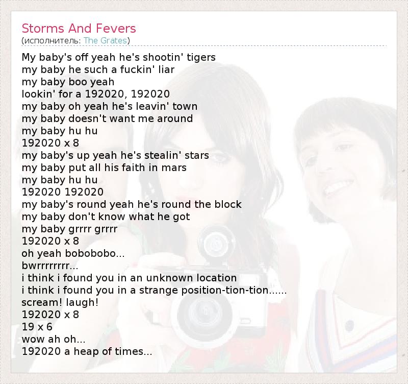 А как ты думаешь, о чем песня "Storms And Fevers" ?
