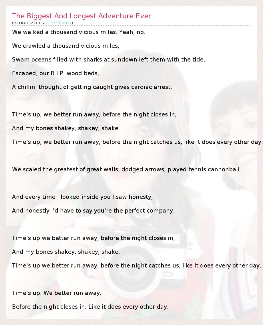 А как ты думаешь, о чем песня "The Biggest And Longest Adventure Ever" ?