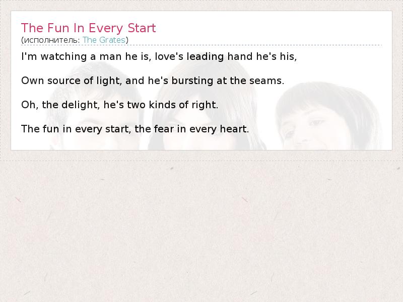 А как ты думаешь, о чем песня "The Fun In Every Start" ?