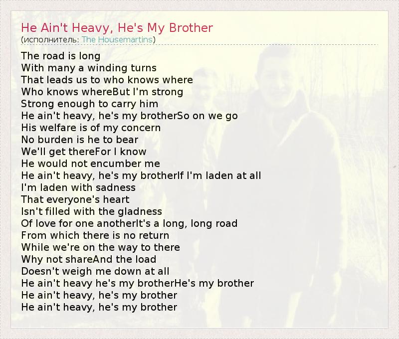 А как ты думаешь, о чем песня "He Ain't Heavy, He's My Brother" ?