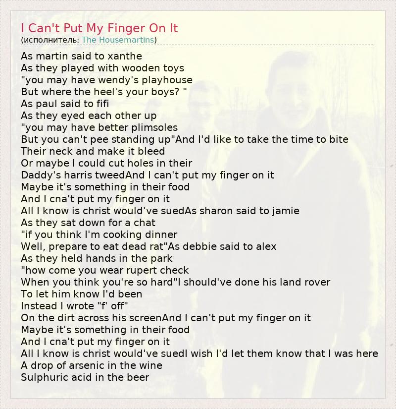 А как ты думаешь, о чем песня "I Can't Put My Finger On It" ?