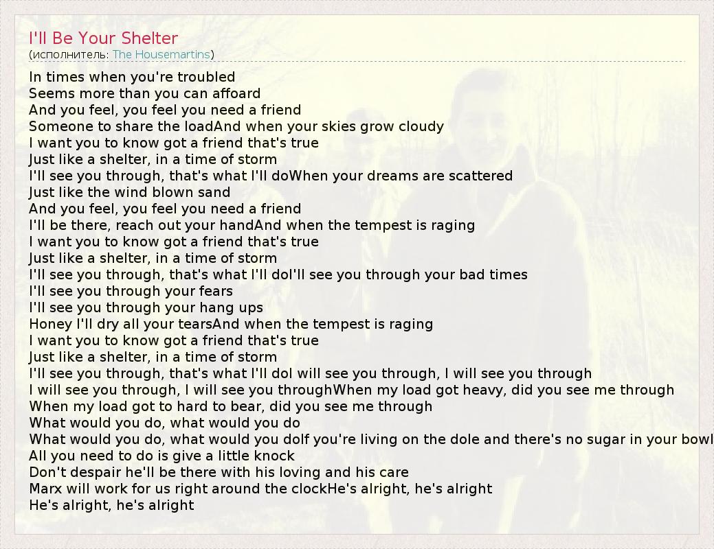 А как ты думаешь, о чем песня "I'll Be Your Shelter" ?