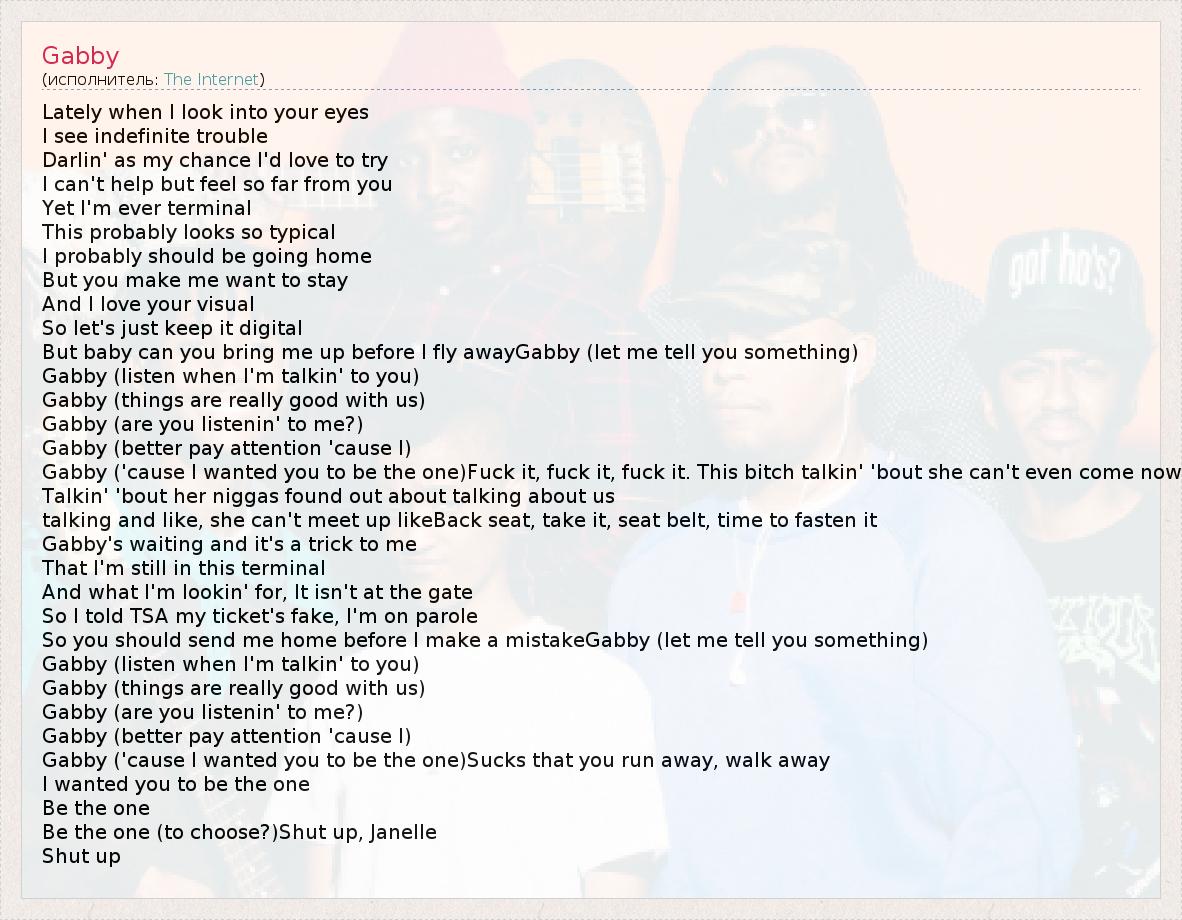 Gabby ('cause I wanted you to be the one)Fuck it, fuck it, fuck it. This bitch talkin' 'bout she can't even come now